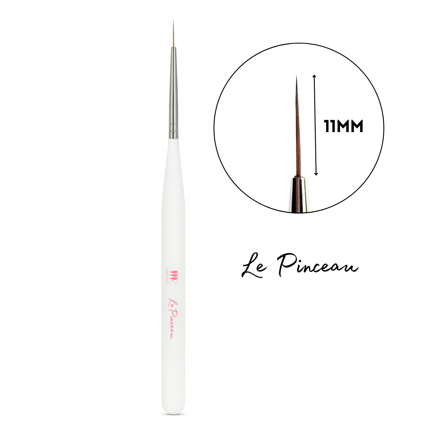 Le poil mesure 11mm, il est en nylon (synthétique). Pointe très fine. Mi-souple / mi-rigide pour tracer avec précision, sans trembler. Idéal pour les débutants comme les confirmés.